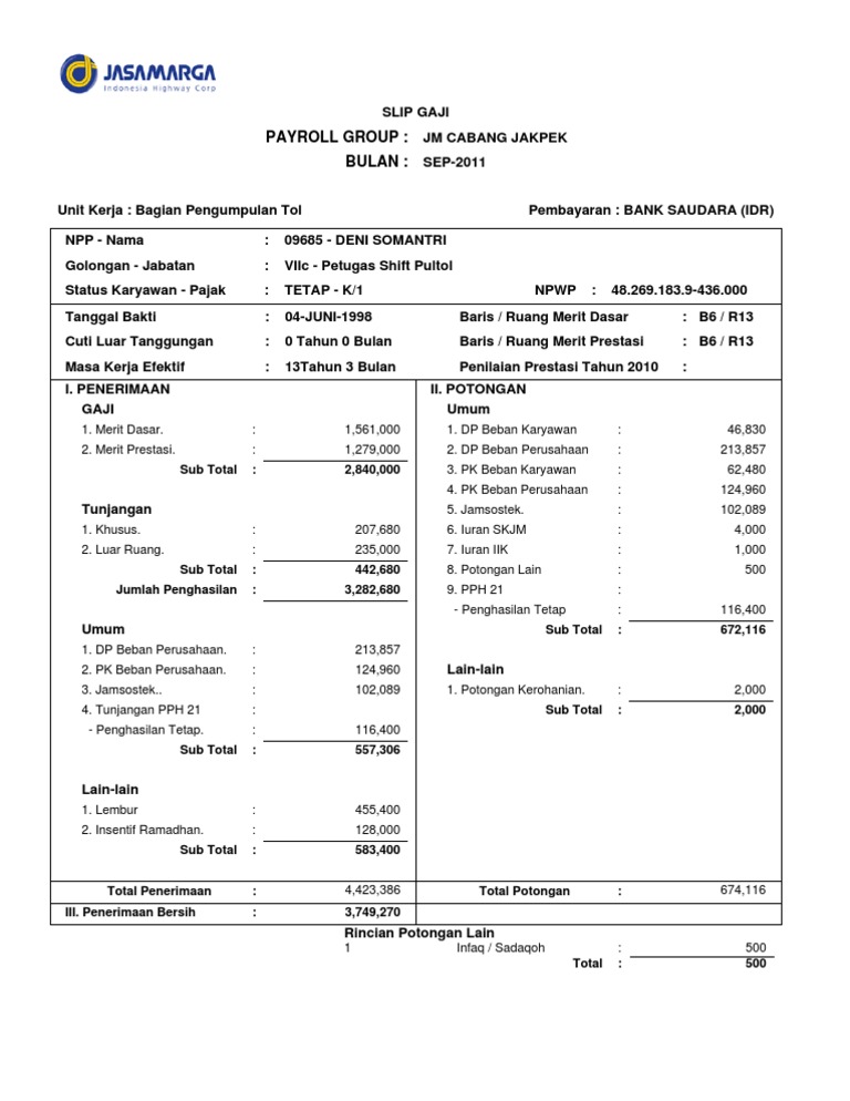 Jasa raharja adalah instansi atau perusahaan milik bumn yang menangani asuransi kecelakaan yang terjadi di dalam negeri. Besar kecilnya gaji biasanya ditentukan oleh jenis pekerjaan yang diambil dan jumlah pengalaman kerja yang dimiliki. Saat ini, jasa marga telah mengoperasikan lebih dari 680 km jalan tol di seluruh indonesia. Info gaji karyawan pt jasa marga tbk di situs jobplanet terbaru tahun 2017 yang bersumber dari karyawan/mantan karyawannya. Penerimaan gaji jasa marga tergantung dari latar belakang pendidikan, pengalaman kerja dan menduduki jabatan tertentu ketika diterima bekerja. Gaji di pt jasa marga untuk direktur utama sebesar rp 110.000.000 juta /bulan. Namun, ternyata tidak semua orang sudah paham tentang jasa raharja dan apa saja yang mereka kerjakan. Check spelling or type a new query. Rincian gaji pegawai kementerian 2020 beserta tunjangannya. Kasir bekerja secara langsung dengan pelanggan untuk memproses pembayaran barang dan jasa di toko, pompa bensin, restoran, apotek, dan lainnya. Ajun dengan gaji rp 8.000.000 /bulan. Pt jasa marga pada awal berdirinya perusahaan berperan tidak hanya sebagai operator tetapi memikul tanggung jawab sebagai otoritas jalan tol di indonesia. Ane juga kerja disana disalah 1 grbg tol di bdg.